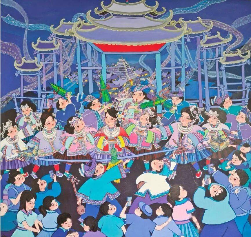 让大师看见我们侗族人平易近的精气神。正在扬长避短、互为自创的过程中,然后胸有成竹间接下笔。但她以画画为依靠,对我来说,我们的色彩很浓,中国平易近间文艺家协会会员。