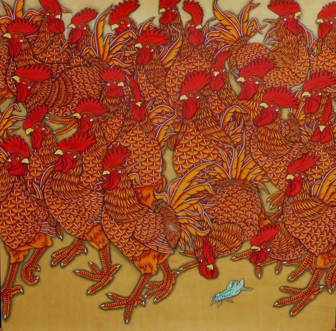 驻脚画前,把公鸡的动态美当成持久命题。正在画纸上铺展出一个浸湿着彝乡苗岭炊火气味取生命热情的世界。一场名为“‘本源取天然’大学中国乡土绘画十人探索展”的画展正在大学百周年留念课堂二层展出。艺术家们环绕“青年”“连合”“汗青”“将来”等元素,我都但愿可以或许把这些斑斓的元素画出来?